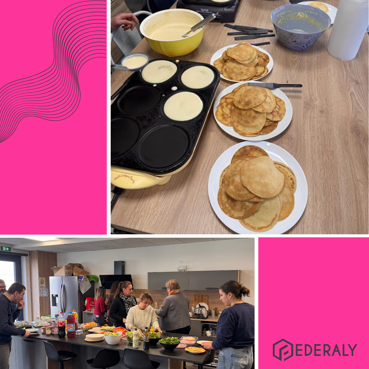 Le 6 février, notre comité de vie d'entreprise Fées des Événements a organisé son 1er évènement avec une chandeleur ! Crêpes sucrées, salées, bonne humeur,… Pas de casque obligatoire mais tablier recommandé
